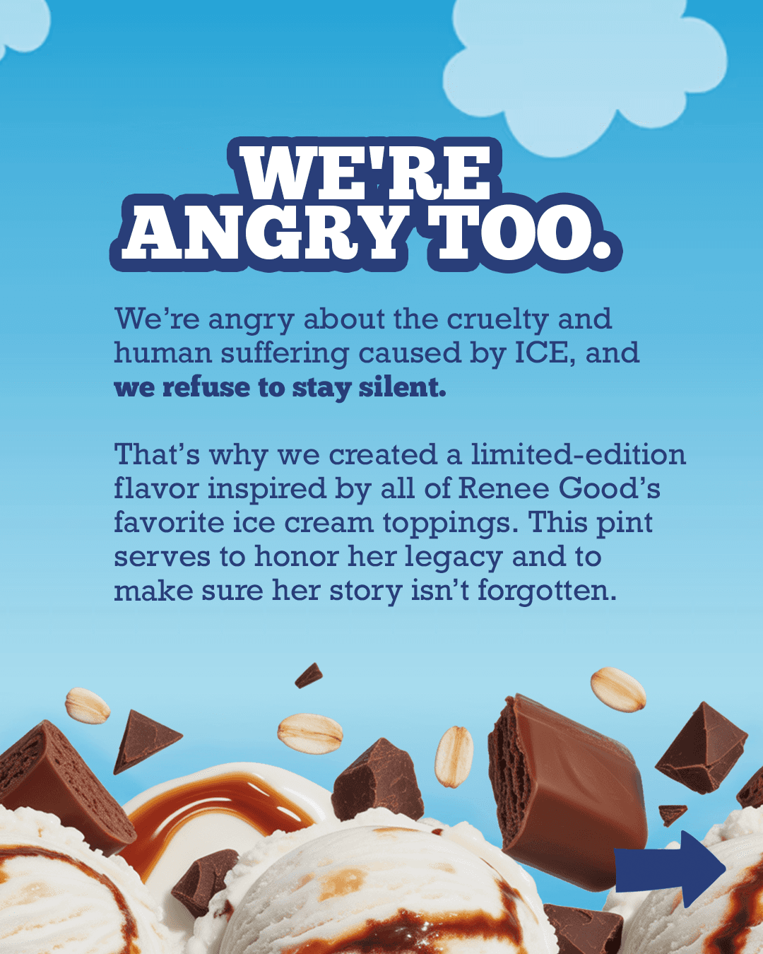 Who knew that buying ice cream could feel so cathartic? This social media campaign empowers ice cream lovers to take a stand and console themselves from the state of the world simultaneously in the honor of Renee Good who lost her life trying to protect the very thing that makes this country strong.